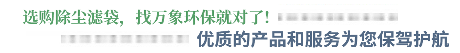 江蘇萬象環??萍加邢薰局饕獜氖赂鞣N除塵器(收塵器、積塵器),袋式除塵器、氣箱脈沖除塵器、單機除塵器;濾袋(除塵布袋、除塵濾袋、除塵袋、過濾氈、過濾布、收塵袋、積塵袋),高溫濾袋系列如氟美斯針刺氈濾袋、美塔斯針刺氈濾袋、玻纖針刺氈濾袋、玻纖布;中溫系列如PPS針刺氈濾袋、P84針刺氈濾袋、亞克力針刺氈濾袋;常溫系列如滌綸針刺氈濾袋、丙綸針刺氈濾袋、覆膜針刺氈以及涂層、拒水防油、防靜電系列和各種龍骨、電磁脈沖閥、控制儀等生產與加工,是 大型濾料廠家之一,員工余人,企業擁有專業檢測中心,具有完備的專業安裝和售后服務體系。